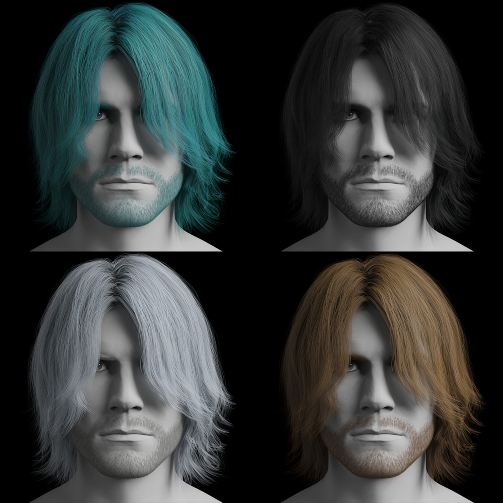 A transmapped and fibermesh hair bundle inspired by Dante from Devil May Cry 5 to suit Genesis 8 Male. Offered separately for those who want the hair, but not the character. Created by commission.