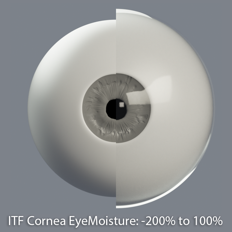 - ITF Cornea EyeMoisture Scale: Enlarge or shrink just the Cornea and EyeMoisture. Useful for correcting instances of the Sclera poking through the EyeMoisture.